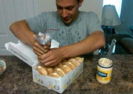 2. เปลี่ยนไส้โดนัท ให้เป็นมายองเนส หรือมัสตาร์ด