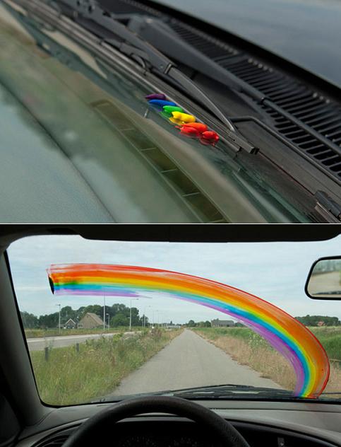 20. ถุงสี จะช่วยทำให้กระจกหน้ารถเพื่อนคุณสวยงามเป็นสีรุ้ง