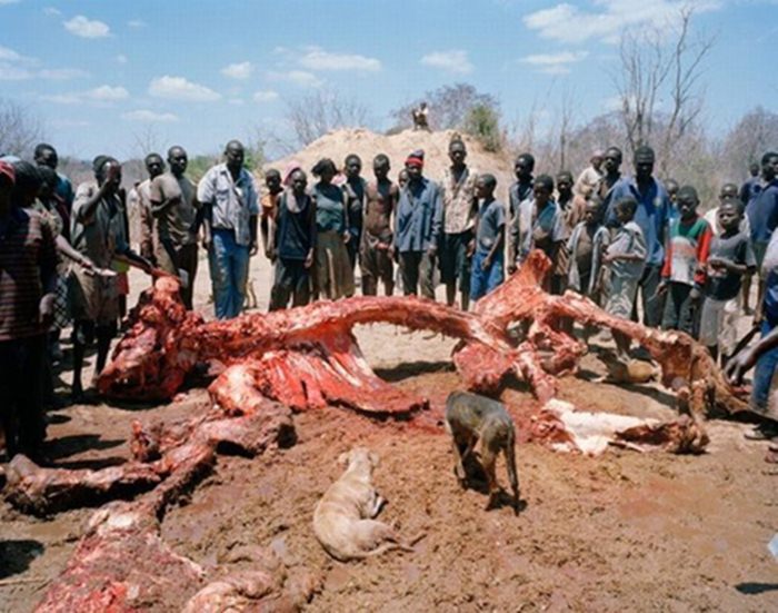 เป็นเนื้อที่คนในแถบแอฟริกานิยมบริโภคกันเป็นอย่างมาก เนื่องจากเนื้อช้างมีปริมาณมากถึงขนาดเลี้ยงคนทั้งหมู่บ้านได้เลยทีเดียว โดยวิธีกินนั้นพวกเขาจะนำเนื้อช้างไปคลุกเคล้ากับเครื่องเทศและเกลือ แล้วกินสดๆ เลย หรืออาจจะนำไปตากแห้งก็ได้