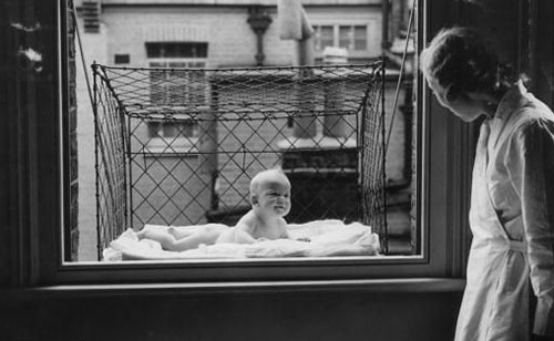 - เป็นตะแกรงลวดที่ใช้แขวนเด็กไว้เหนือหน้าต่าง เป็นนัยว่าสำหรับบ้านที่ไม่มีพื้นที่สวนให้ออกไปเดินเล่น เป็นที่นิยมในหมู่ Chelsea Baby Club ใน London (Baby Cage, 1937)