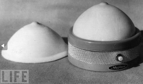 - เต้านมเทียมพร้อมจังหวะการเต้นของหัวใจ เป็นเต้านมเทียมที่มีจังหวะการเต้นของหัวใจ แต่อย่าคิดลึก นักประดิษฐ์ชาวญี่ปุ่นเค้าทำเพื่อให้เด็กหลับง่ายขึ้นเท่านั้นเอง (Beating Breasts, 1963)