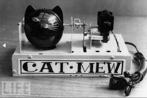 - เครื่องขู่หนู เครื่องนี้ทุกๆ นาทีจะมีเสียงแมวร้องสิบครั้ง และมีไฟออกมาจากตาแมวด้วย หนูสมัยก่อนคงกลัวแมว แต่ถ้าเป็นสมัยนี้ไม่รู้จะใช้ได้ผลไหมนะ 555 (Cat-Mew Machine, 1963)