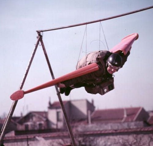 - อันนี้ขำไม่ออก เพราะชายในภาพ Leo Valentin เสียชีวิตจากการกระโดดจากเครื่องบิน เพราะเครื่องนี้มันไม่เวิร์ค (Birdman Suit, 1955)
