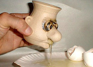 - ตอกไข่ใส่ลงไป แล้วไข่ขาวและไข่แดงจะถูกแยกออกจากกัน