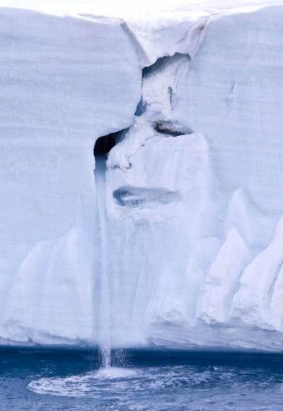 ช่างภาพ Michael Nolan ได้ถ่ายภาพที่ปราศจากการตัดต่อที่ธารน้ำแข็งในสแกนดิเนเวีย ภาพที่ดูราวกับหน้าคนที่กำลังโศกเศร้านี้เกิดขึ้นจากน้ำแข็งละลายและธารน้ำที่ไหลผ่านเท่านั้น และเป็นหนึ่งในภาพลวงตาที่ดีที่สุดที่เกิดขึ้นเองในธรรมชาติ