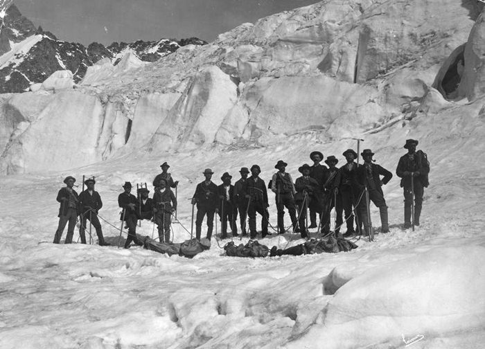 2. กลุ่มนักปีนเขานำร่างของเพื่อนลงมาจากเทือกเขา Montblanc ปี 1895