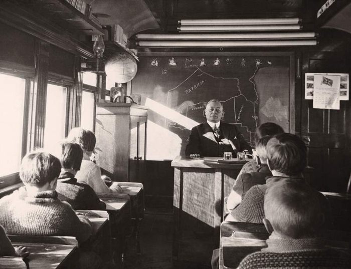 10. ห้องเรียนบนรถไฟ Ontario, Canada ในปี 1932