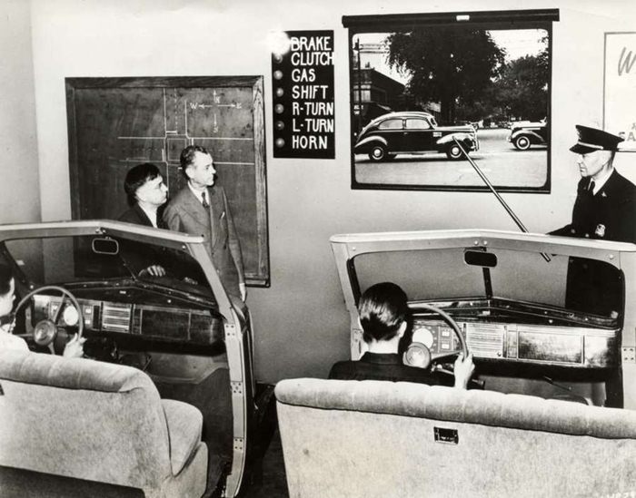 13. ชั้นเรียนสอนการขับรถยนต์ที่ Michigan Highland Park University ในปี 1939