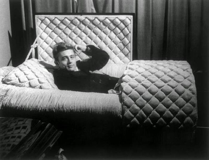 21. James Dean ถ่ายรูปในขณะที่นอนในโลงศพ ซึ่งเป็นช่วงปีเดียวกันกับที่เขาเกิดอุบัติเหตุทางรถยนต์จนเสียชีวิต ในปี 1955