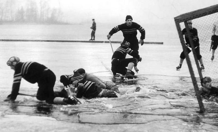 23. ภาพระหว่างการแข่งขันฮอกกี้น้ำแข็ง ดังนั้นจึงต้องยกเลิอกการแข่งกลางครัน ในประเทศสวีเดน เมื่อปี 1959