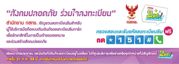 หลังจากก่อนหน้านี้มีข่าวว่าสำนักงานกสทช. ประกาศว่าผู้ใช้บริการโทรศัพท์ระบบเติมเงินต้องลงทะเบียนซิมการ์ด เพื่อแสดงตัวว่าเป็นเจ้าของเบอร์ ก่อนวันที่ 31 กรกฏาคม 2558 และถ้าหากพ้นกำหนดเวลาดังกล่าว ก็จะไม่สามารถใช้งานได้ ซึ่งวิธีการลงทะเบียนซิมการ์ดระบบเติมเงินสามารถมีวิธีทำง่ายๆ ดังนี้
