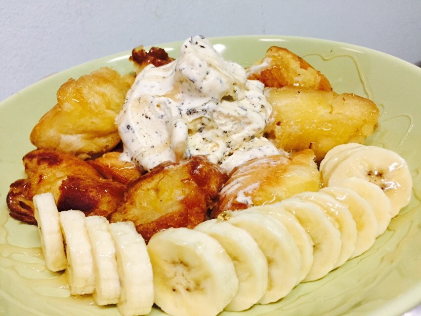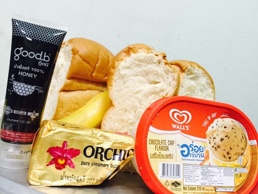 ใส่ไอศกรีมลงปายยยยยย เยอะๆๆๆตามใจเราอยากจะใส่ คุณแฟนนางเวอร์ด้วยค่ะ ให้เราหั่นกล้วย เราก็เคะๆๆๆๆ หั่นเรียงๆ แล้วบีบน้ำผึ้งท่วมมมมม