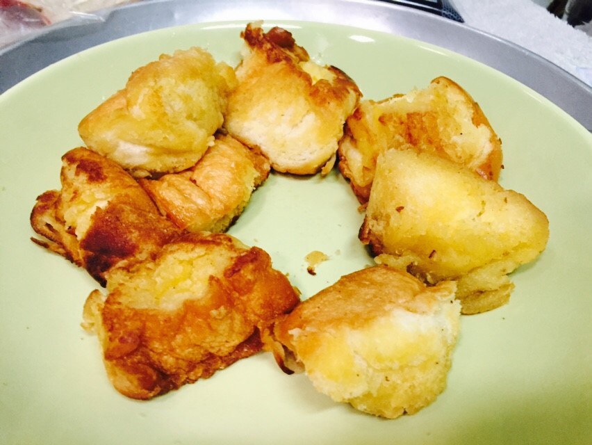 พอเนยซึมเข้าขนมปังเราก็นำขึ้นใส่จานเลยค่ะ จัดวางให้สวยงาม ซึ่งไม่สวยงามเท่าไหร่ .... -.-!!