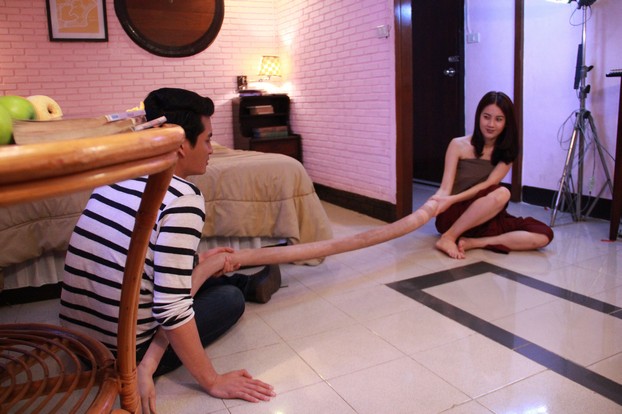บันทึกกรรมนำเรื่องกรรมดีๆ มาฝากกันอีกแล้ว คราวนี้เรื่องราวเกิดขึ้น ณ อพาร์ทเม้นท์ที่มี “ผีฟ้ารุ่ง” (พลอย-ภัทรากร) ผีฝึกหัดสุดสวย กับ “ก้อง” (ปั้นจั่น) หนุ่มนักเขียนบทแนวสยองขวัญ ที่เข้ามาในอพาร์ทเม้นท์แห่งนี้เพราะอยากเจอผีตัวเป็นๆ เพื่อเป็นส่วนหนึ่งในการบันทึกเทปรายการผี และถ้าให้พูดถึงฉากเด็ดของเรื่องนี้ ก็คงหนีไม่พ้นฉากผีผ้าห่มชวนจิกหมอนของ “พลอย” กับ “ปั้นจั่น” ที่ชวนกันเล่นผีผ้าห่มกลางวันแสกๆ วันนี้เลยขอพาไปดูเบื้องหลังสนุกๆ กันเริ่มด้วยฉากที่ผีฝึกหัด “ผีฟ้ารุ่ง” (พลอย) ต้องทำการหลอกผีให้ “ก้อง” (ปั้นจั่น) กลัวหัวหด งานนี้ผู้กำกับ เทส-อมรศักดิ์ อมรส่งเจริญ ขอขยี้ความจิ้นเพิ่มเป็นสองเท่า จับ “พลอย” มุดหลบอยู่ใต้ผ้าห่มผืนเดียวกับ “ปั้นจั่น” โดยเริ่มจากซักซ้อมท่วงท่าของพลอยที่ต้องเอาหน้ามุดผ้าห่มหลบอยู่บนพุงของ “ปั้นจั่น” พอผู้กำกับสั่งห้าสี่สาม “พลอย” ก็ค่อยๆ เลื้อยโผล่ออกมาจากผ้าห่ม งานนี้มีฮาเพราะปั้นจั่นจั๊กกะจี๋ขำก๊ากกันลั่นกอง เทคสอง “ปั้นจั่น” เอาคืน “พลอย” บ้าง พอเจอผีฟ้ารุ่งโผล่ออกมาจากผ้าห่มปุ๊บ “ปั้นจั่น” ก็จ้องตา ทำปิ๊งปิ๊งรักจน “พลอย” เขินจริงไรจริง งานนี้ทำเอาทีมงานเบื้องหลังอมยิ้มกับความน่ารักของคู่ไปตามๆ กัน