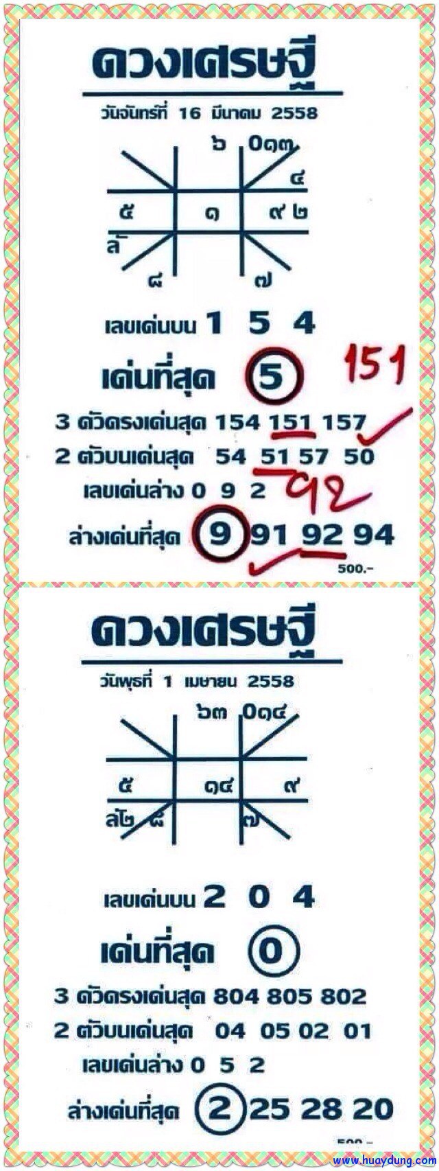 เลขเด็ดคนเหนือดวง 1 เมษายน 2558