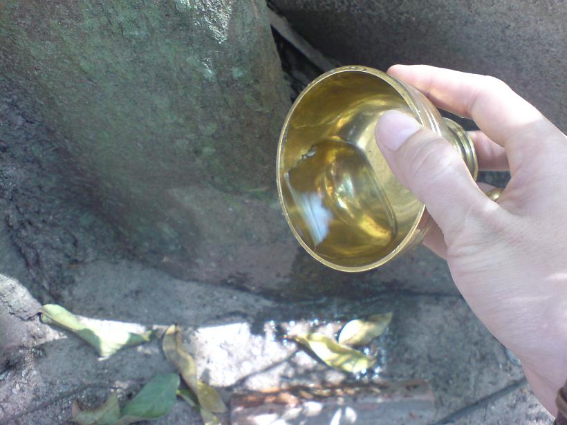 ตอบ.-ไม่จำเป็นต้องใช้มือซ้ายรองรับน้ำกรวด เพียงแต่ใช้มือซ้ายจับภาชนะเปล่าไว้ จะจับที่ขอบปากหรือที่ตัวภาชนะก็ได้ ไม่ต้องจับเลยก็ได้ ใช้แต่มือขวาจับที่กรวดน้ำ เช่น แก้วน้ำ คณโฑน้ำ หรือถ้วยน้ำอย่างเดียวก็ได้