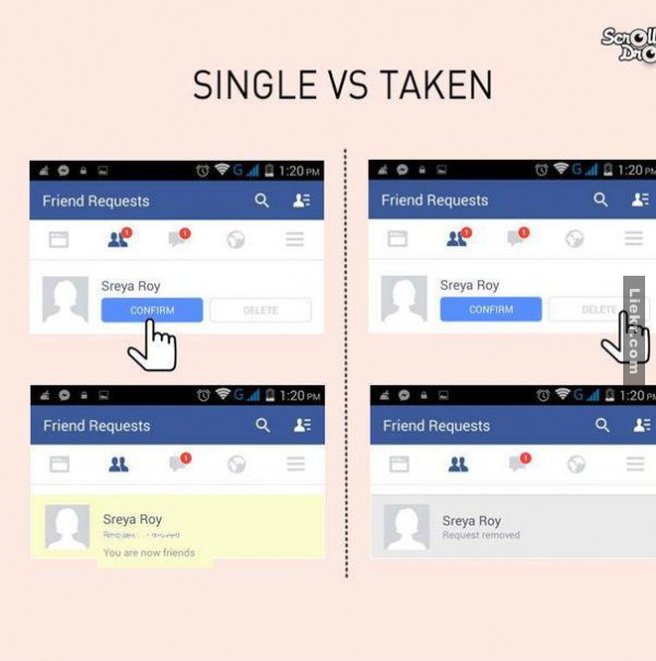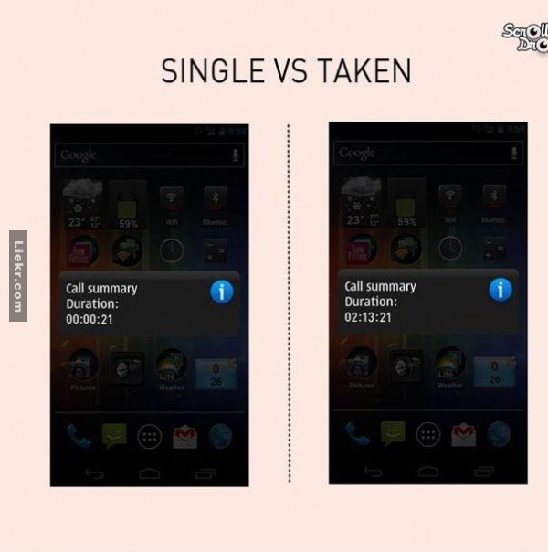 ลองดูภาพข้างล่างความแตกต่างระหว่างคนโสด(ซ้าย)กับคนมีเจ้าของ(ขวา) ที่ดูแล้วอาจจะมีคุณหัวเราะออกมาดังๆ