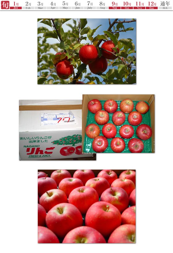 อันดับ 8 Apple (りんご) จากจังหวัด Nagano จังหวัดที่ผลิตแอปเปิ้ลได้มากเป็นอันดับ 2 ของประเทศญี่ปุ่น (อันดับ 1 คือจังหวัด Aomori) สำหรับแอปเปิ้ลพันธุ์ที่มีชื่อเสียงของจังหวัด Nagano คือ Tsugaru (つがる) และ Fuji (ふじ) คนญี่ปุ่นนิยมรับประทานแอปเปิ้ลกันมากเนื่องจากเป็นผลไม้ที่ดีต่อสุขภาพ ช่วยลดคลอเลสเตอรอล ลดความดัน และยังช่วยบำรุงหัวใจด้วย แอปเปิ้ลของจังหวัด Nagano นั้นจะมีช่วงการเก็บเกี่ยวตั้งแต่เดือนกันยายน ถึงเดือนมกราคม
