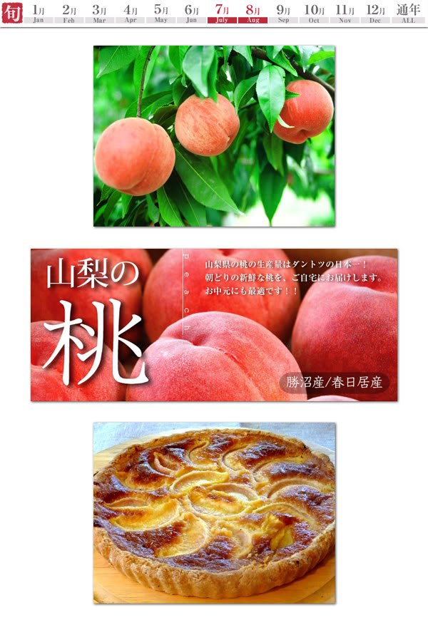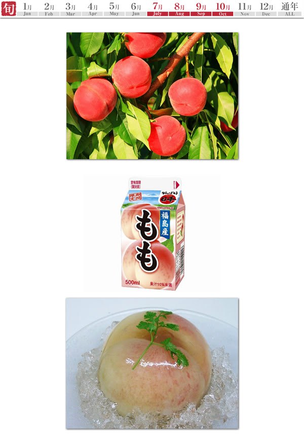 3 Momo (もも) ลูกพีชจากจังหวัด Yamanashi จังหวัดซึ่งผลิตลูกพีชได้มากเป็นอันดับ 1 ของประเทศญี่ปุ่น จุดเด่นของลูกพีชของจังหวัด Yamanashi อยู่ที่ความชุ่มฉ่ำ หอม หวาน และความนุ่มละมุนของผลลูกพีช และลูกพีชของ Yamanashi จะมีฤดูเก็บเกี่ยวที่สั้นมากคือช่วงเดือนกรกฏาคมและสิงหาคมเท่านั้น