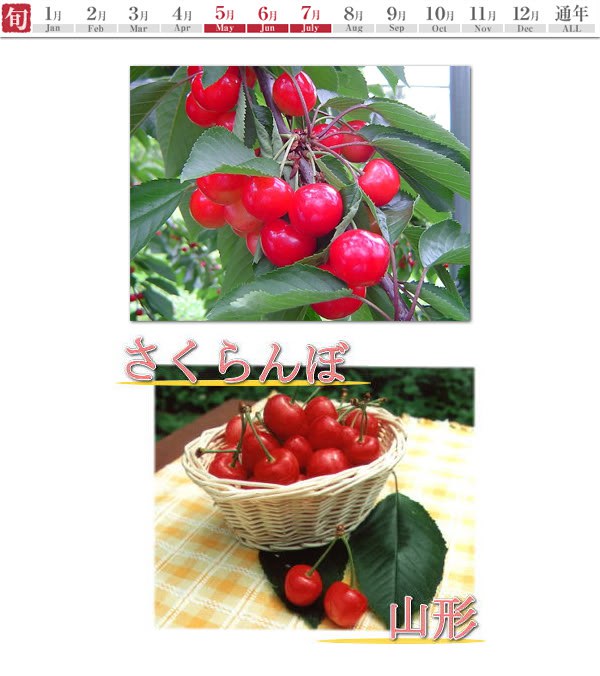 อันดับ 6 Yamagata Sakuranbo (山形のさくらんぼ) เชอร์รี่จากจังหวัด Yamagata จังหวัดซึ่งผลิตเชอร์รี่ได้มากที่สุดของญี่ปุ่น ลูกเชอร์รี่นั้นถ้าเก็บจากต้นแล้วจะต้องรีบรับประทานภาย 2-3 วัน เพราะถ้าเก็บไว้นานเกินไปจะทำให้ความหวานลดน้อยลง (ถ้ารับประทานวันที่เก็บมาจากต้นได้ก็นับว่าดีที่สุด) เนื่องจากเป็นผลไม้ที่มีหน้าตาน่ารัก สีสันสดใส และหารับประทานได้แค่ในช่วงสั้น ๆ คือแค่ช่วงเดือนพฤษภาคม ถึงเดือนกรกฏาคม เท่านั้นเชอร์รี่จึงเป็นผลไม้ที่เป็นที่นิยมสำหรับคนญี่ปุ่นเป็นอย่างมาก
