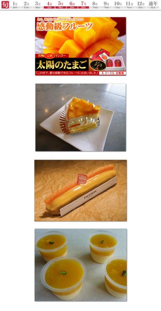อันดับ 4 Kanjuku Mango (完熟マンゴー) มะม่วงสุก เป็นผลไม้ขึ้นชื่อของจังหวัด Miyazaki มะม่วง ที่มีคุณภาพนั้นจะต้องมีน้ำหนักไม่ต่ำกว่า 350 กรัม และมีความหวานมากกว่า 15 (ระดับการวัดความหวาน) และเนื่องจากมะม่วงของญี่ปุ่นนั้นมีเปลือกสีแดง ดังนั้นถ้ามะม่วงผ่านเกณฑ์ดังกล่าว จะเรียกว่า “Taiyou No Tamago : 太陽の卵” คำแปลก็คือ “ไข่ของพระอาทิตย์” เป็นผลไม้ที่มีราคาแพง นิยมทานสุก และนิยมนำไปเป็นส่วนผสมของเค้กและเยลลี่ด้วย วางจำหน่ายช่วงเดือนเมษายนถึงเดือนกรกฏาคม