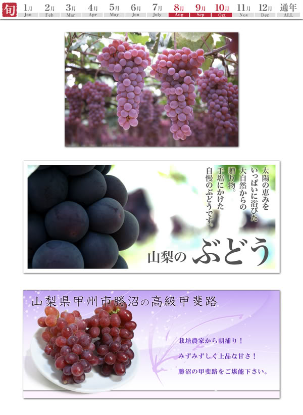 อันดับ 1 Budou (ぶどう) องุ่นจากจังหวัด Yamanashi จังหวัดซึ่งล้อมรอบไปด้วยภูเขาทั้ง 4 ทิศ ทำให้เป็นพื้นที่ได้รับแสงแดดยาวนาน และมีปริมาณน้ำฝนน้อย เหมาะกับการปลูกผลไม้อย่างเช่น “องุ่น” เป็นอย่างมาก องุ่นของจังหวัด Yamanashi มีผลใหญ่ เปลือกบาง น้ำชุ่มฉ่ำ และมีรสชาติหวาน วางจำหน่ายในช่วงเดือนสิงหาคม ถึงเดือนตุลาคม
