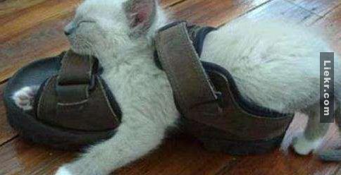 14.เจ้านี่คงจะเหนื่อยมากเลย แม้กระทั่งรองเท้าแตะก็ทำเป็นเตียงนอนได้