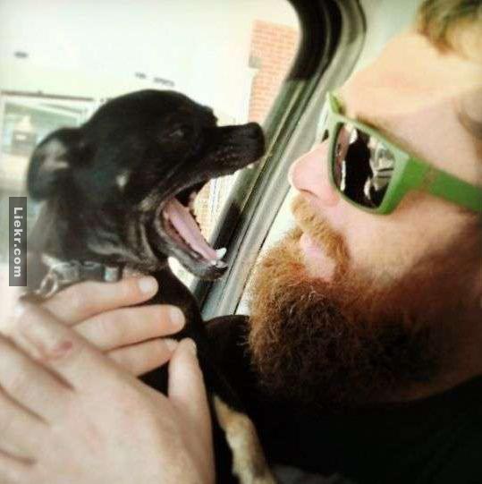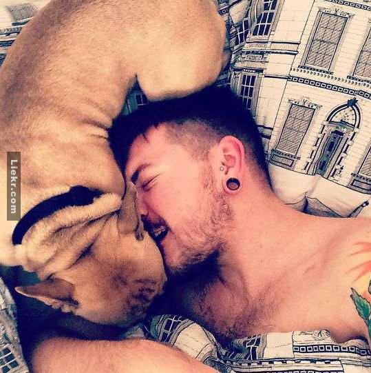 หนุ่มหล่อกำลังจูบน้องหมาที่น่ารัก