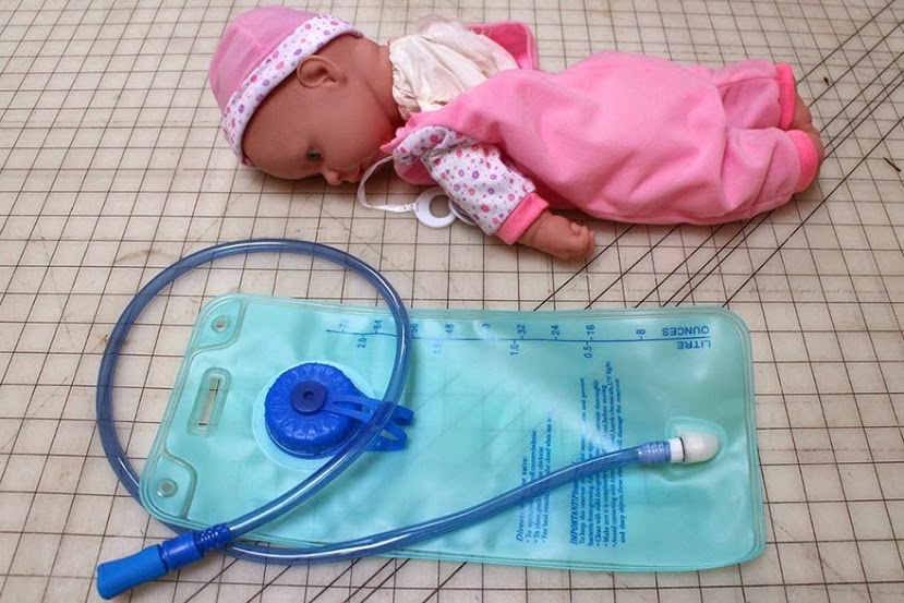 ผม เริ่มการทำกระติกเหล้าแบบพกพา โดยการหาถุงสำหรับบรรจุเหล้าและตุ๊กตาทารกที่ใหญ่ที่สุดที่ฉัน และผมก็เอานุ่นที่อยู่ในตัวตุ๊กตาออกให้หมดเพื่อใช้สำหรับซ่อนเครื่องดื่ม และทำการใส่ถุงสำหรับบรรจุเครื่องดื่มลงไปแทน จากนั้นทำการเจาะบริเวณหัวของตุ๊กตาเพื่อทำเป็นที่สำหรับดูดเครื่องดื่มผ่าน ทางจุกดูด