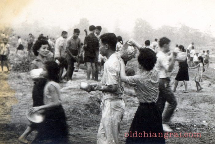 การเล่นน้ำสงกรานต์ริมฝั่งแม่น้ำกก ซึ่งในอดีตหนุ่มสาวจะนิยมไปเล่นน้ำสงกรานต์ในบริเวณนั้น สังเกตว่าในการรดน้ำจะนิยมใช้ขันเงินเป็นอุปกรณ์