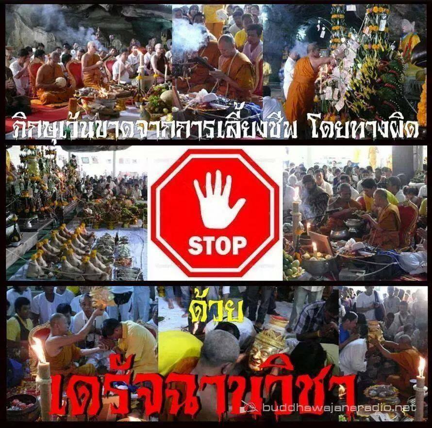 "...ภิกษุเว้นขาดจากการเลี้ยงชีพโดยทางผิดด้วยติรัจฉานวิชา เช่นอย่างที่สมณพราหมณ์ ผู้เจริญบางจำพวกฉันโภชนะที่เขาให้ด้วยศรัทธาแล้ว ยังเลี้ยงชีพโดยทางผิดด้วยติรัจฉานวิชาเห็นปานนี้ คือ ทำพิธีบนบาน ทำพิธีแก้บน ร่ายมนต์ขับผี สอนมนต์ป้องกันบ้านเรือน ทำกะเทยให้กลับเป็นชาย ทำชายให้กลายเป็นกะเทย ทำพิธีปลูกเรือน ทำพิธีบวงสรวงพื้นที่ พ่นน้ำมนต์ รดน้ำมนต์ ทำพิธีบูชาไฟ ปรุงยาสำรอก ปรุงยาถ่าย ปรุงยาถ่ายโทษเบื้องบน ปรุงยาถ่ายโทษเบื้องล่าง ปรุงยาแก้ปวดศีรษะ หุงน้ำมันหยอดหู ปรุงยานัตถุ์ ปรุงยาทากัด ปรุงยาทาสมาน ป้ายยาตา ทำการผ่าตัด รักษาเด็ก ใส่ยา ชะแผล แม้ข้อนี้ก็เป็นศีลของเธอประการหนึ่ง..."