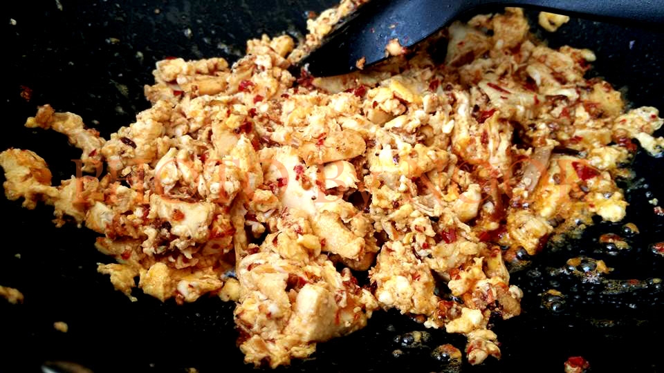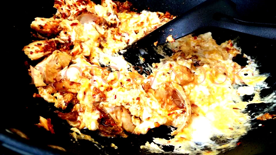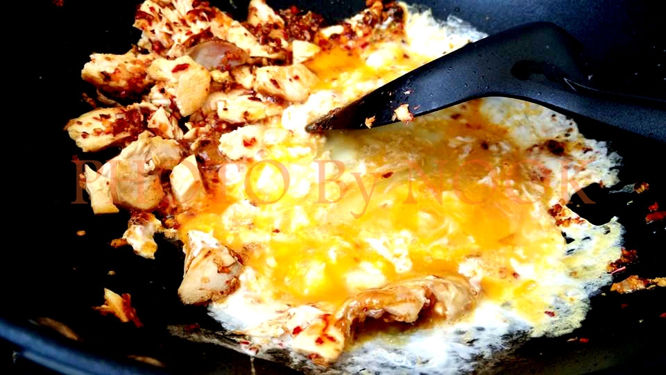 ใส่ไก่ลงไปผัด (ใส่ไก่สดหรือเนื้อสัตว์ชนิดอื่นก็ได้ ไม่ว่ากัน )