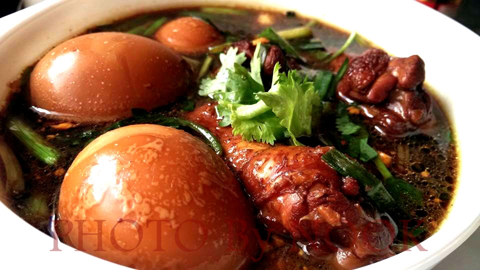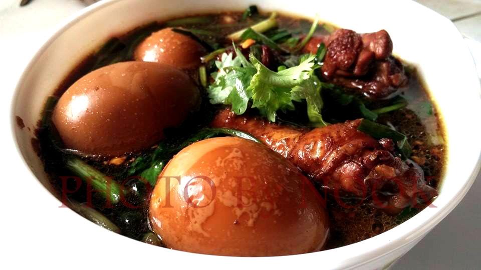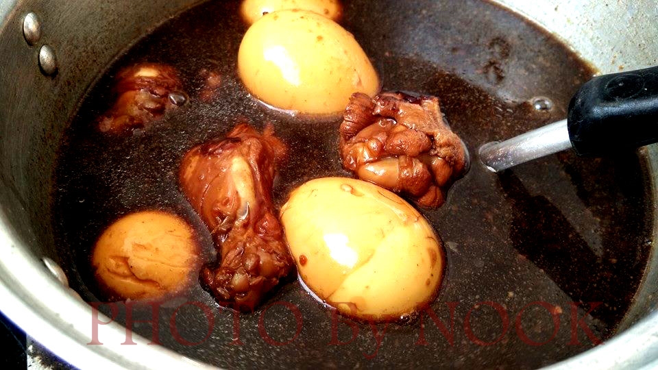 เติมน้ำ ใส่ไข่ลงไปต้มจนน้ำพะโล้เข้าเนื้อไข่และไก่