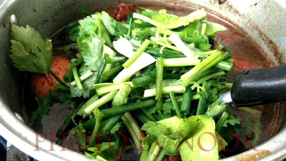 ปรุงรสตามชอบ ตามด้วยผักขีต้นหอม ตั้งโอ๋ ใส่ลงไป