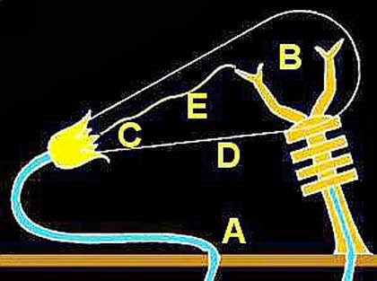 จากหนังสือ "ดวงไฟแห่งฟาโรห์" (Lights of the Pharaohs) ของสองนักเขียนชาวออสเตรียได้กล่าวไว้ว่า ในภาพสลักรูปหลอดไฟนั้นประกอบไปด้วย ตัวนักบวชผู้ถือหลอดไฟที่มีส่วนประกอบของตัวหลอด พร้อมทั้งตัวปล่อยกระแสไฟฟ้าที่แสดงด้วยรูปงู ปลั๊กรูปดอกบัว ตามด้วยสายไฟ และไอโซเลเตอร์