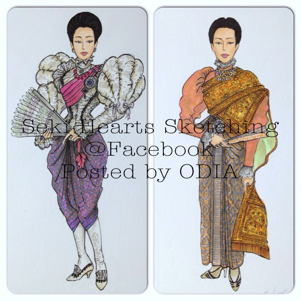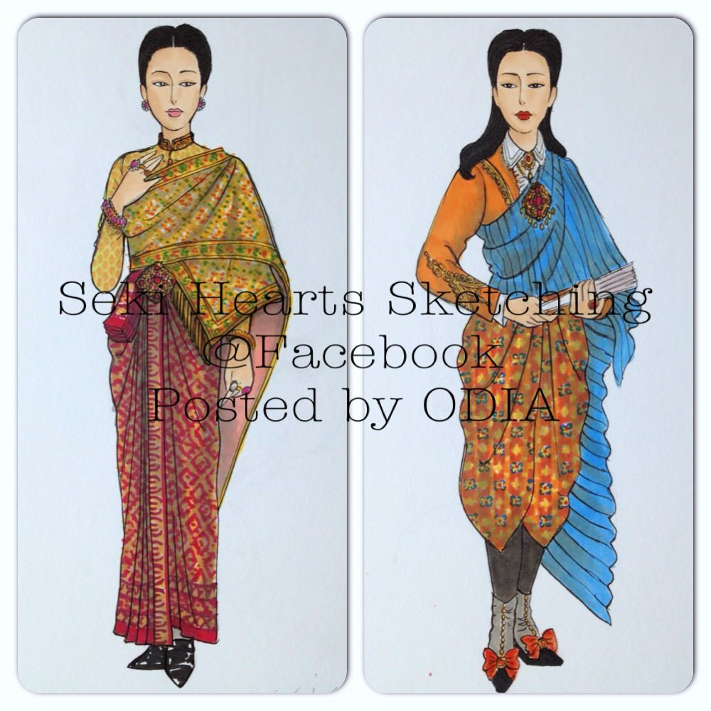ขวาสำหรับตำหนักพระราชชายาเจ้าดารารัศมีจะยุ่งซิ่นเหนือหรือบางครั้งจะนุ่งซิ่นพม่าลุนตยาต่อตีนจก