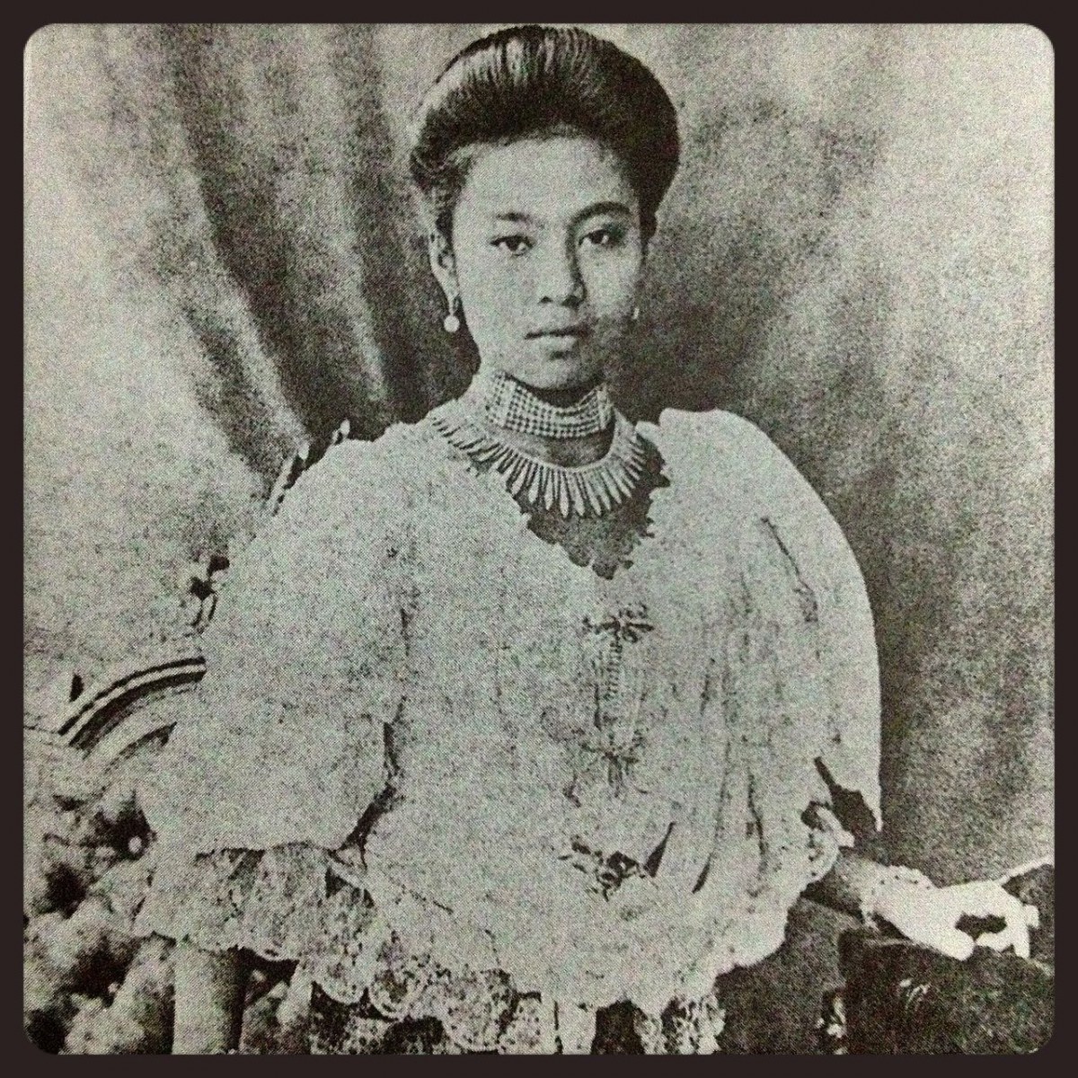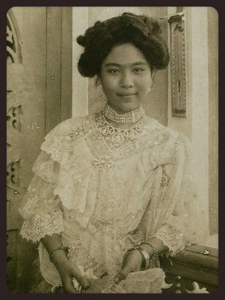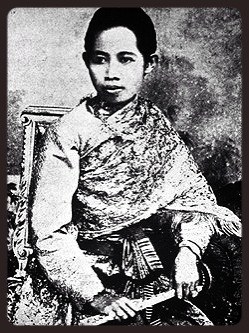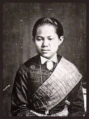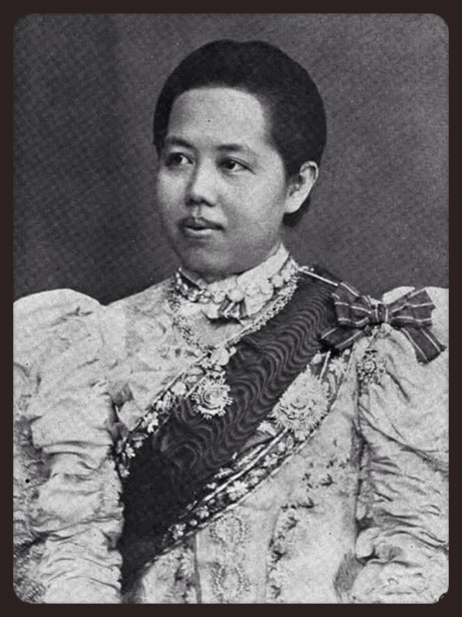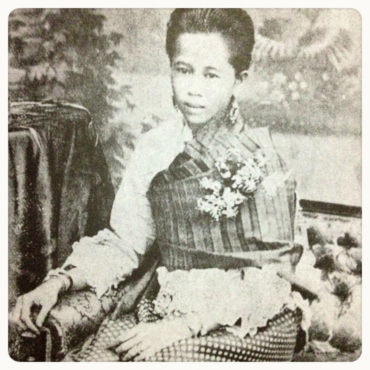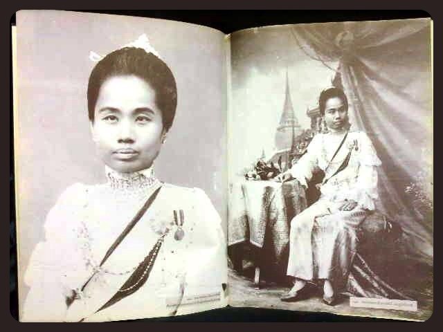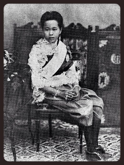 สมเด็จพระนางเจ้าสุนันทากุมารีรัตน์ ทรงสไบปักไม่ทรงเสื้อตามแบบสตรีในสมัยต้นรัชกาลที่5