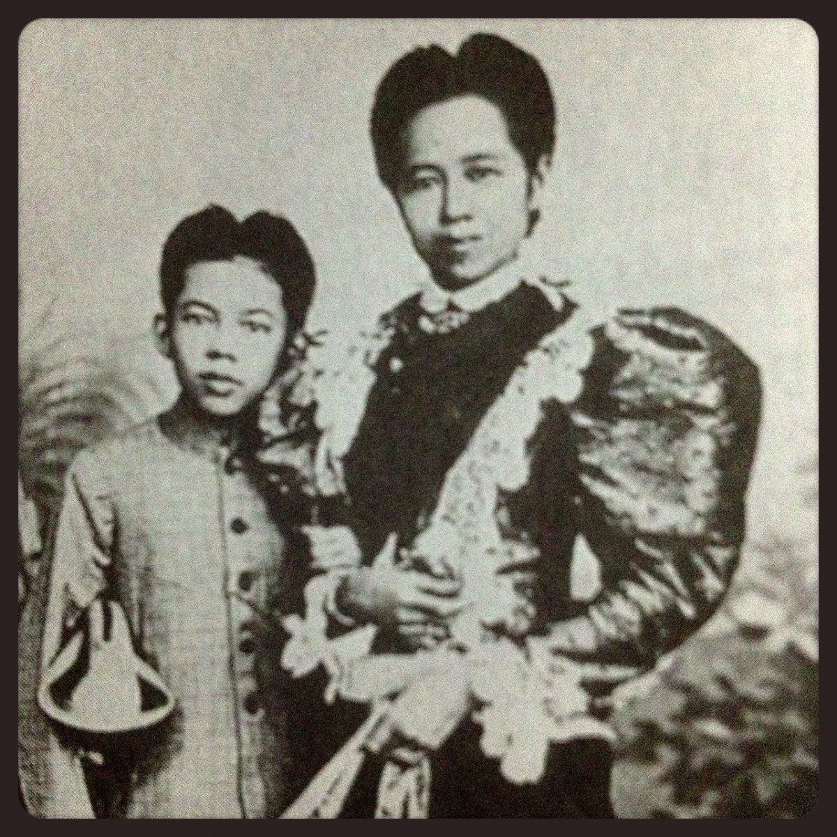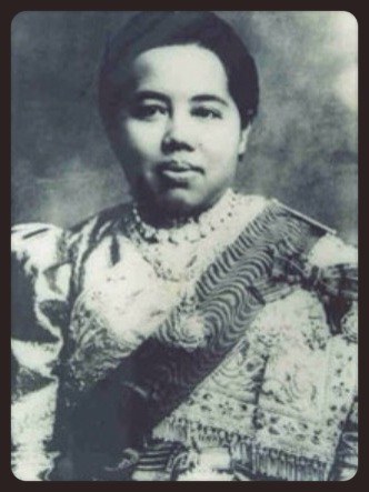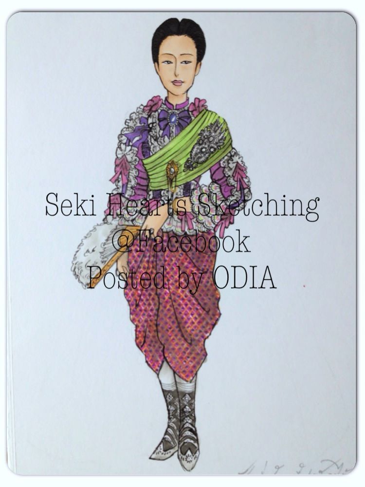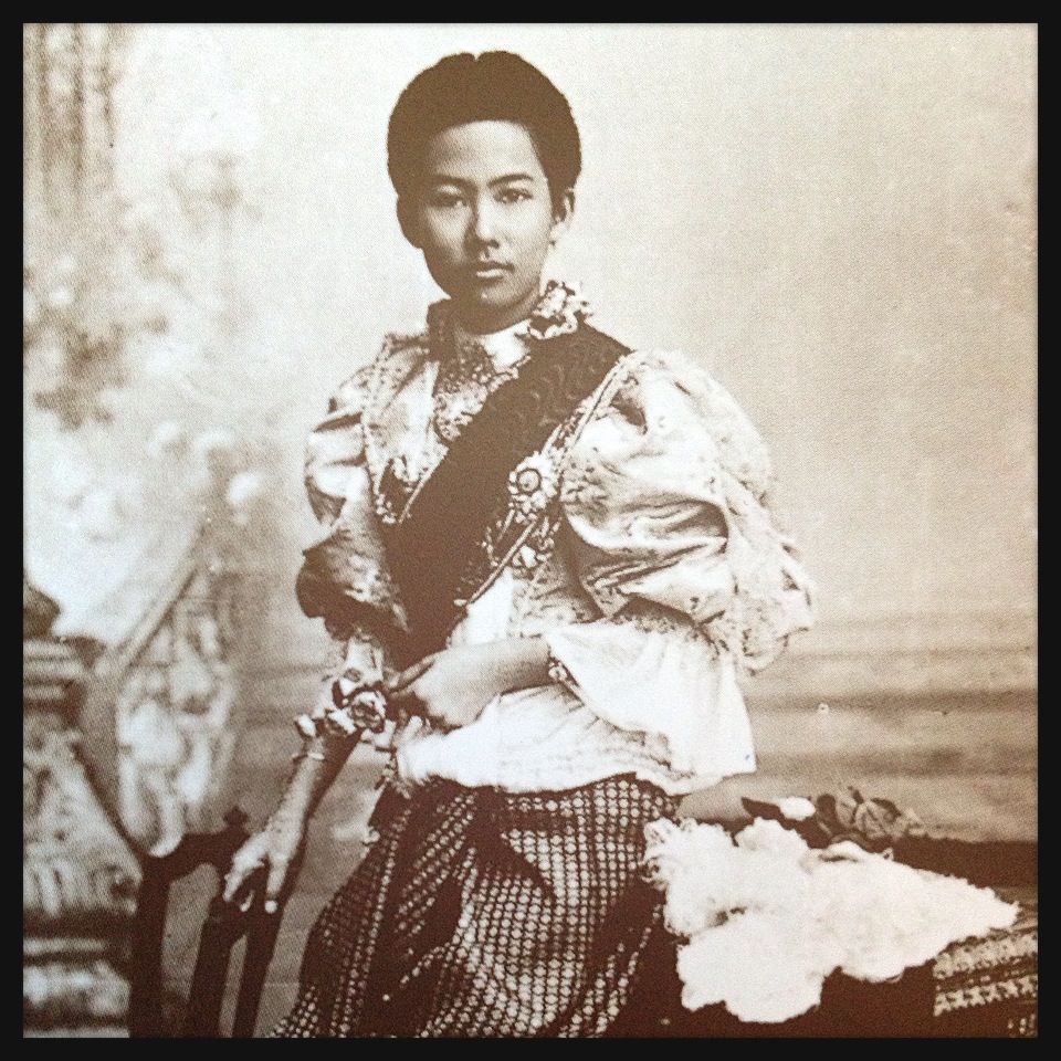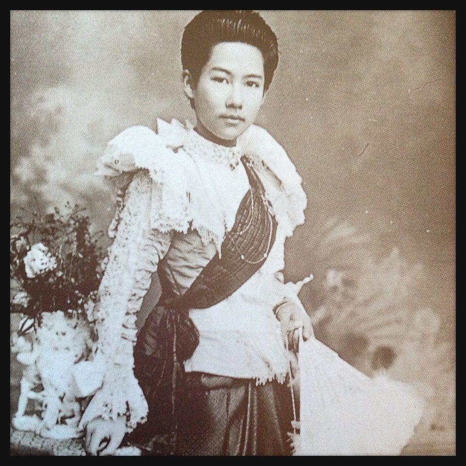 สมเด็จพระนางเจ้าสุนันทากุมารีรัตน์ ทรงสไบปักไม่ทรงเสื้อตามแบบสตรีในสมัยต้นรัชกาลที่5