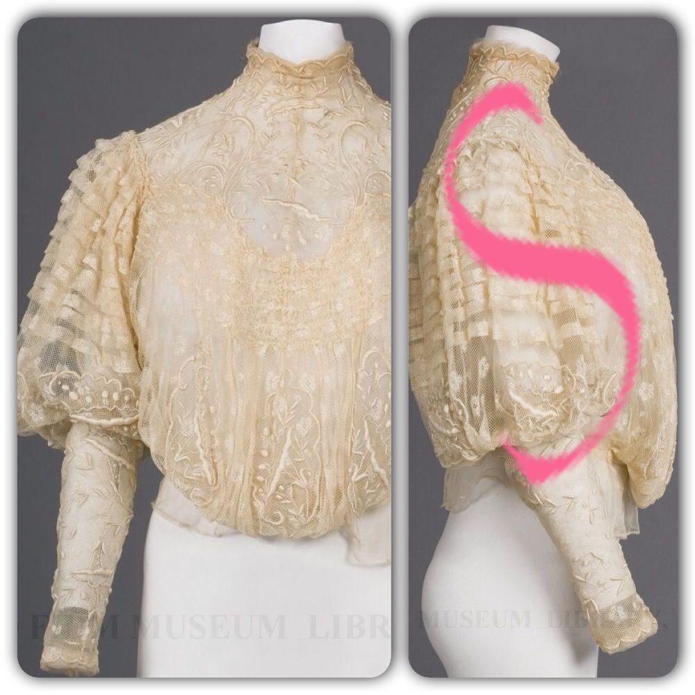 ช่วงปี1900(พศ.2457)แฟชั่นเสื้อมีคอสูงขึ้นและแขนเริ่มลีบลง ในตะวันตกเรียกว่า Alexandra bodice หรือprincess line เกิดจากช่างภาพวาดการ์ตูนล้อเลียนqueen Alexandra ให้มีเอวคอดอกใหญ่เป็นตัวS สมัยนี้นิยมเสื้อที่ผลิตผ้าสีขาวปักลวดลายฉลุลายครับ