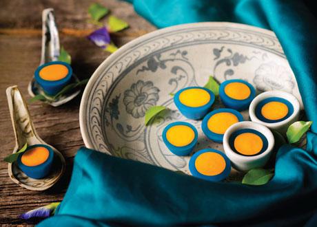 หนึ่งในบรรดาขนมไทยชาววัง ที่มีชื่อ หน้าตาและสีสัน ที่สวยงาม เกิดจากจินตนาการ ออกแบบสีและรูปทรงจากการฟังบทเพลงพระราชนิพนธ์ "บุหลันลอยเลื่อน" โดยแทนสีเหลืองที่อยู่ตรงกลาง เป็น บุหลันหรือดวงจันทร์ (ทำจากไข่แดง) และแทนสีฟ้าครามที่อยู่ล้อมรอบ เป็น ท้องฟ้า (จากน้ำอัญชัน)