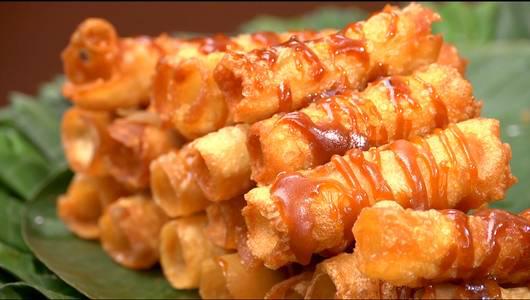 ขนมโพรงแสม มีลักษณะคล้ายทองม้วนแต่ต่างตรงที่เคลือบน้ำตาล หรือน้ำแตงโม ราดพันรอบๆ โดยที่ความกรอบ หอม หวาน และมัน เข้ากันอย่างลงตัว ส่วนใหญ่นิยมใช้เป็นขนมมงคลในพิธีสมรส ซึ่งแทนความหมาย ถึงความแข็งแรงมั่นคงของเสาบ้าน และให้บ่าวสาวมีความรักที่ยืนยาวหวานหอม