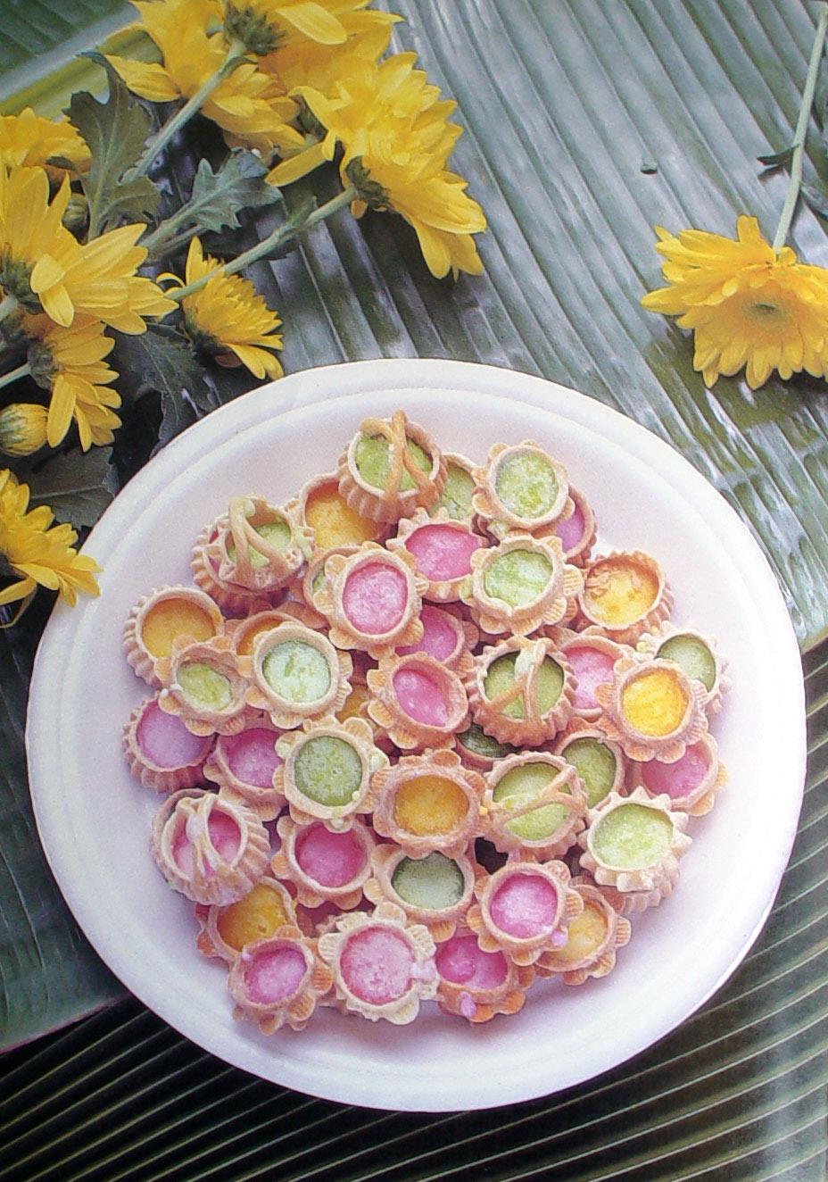 ขนมดอกลำเจียก หรือ ขนมเกสรลำเจียก ตัวขนมมีลักษณะคล้ายดอกลำเจียกที่ออกดอกอย่างเต็มที่ ตัวกลีบเกสรแตกออก ส่งกลิ่นหอมหวนชวนถวิลหา ตัวไส้หวานมันมะพร้าว ถูกห่อด้วยแป้งข้าวเจ้าน้ำใบเตยอบด้วยควันเทียน นุ่มๆหอมๆ เคี้ยวเพลินๆ