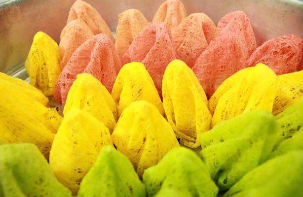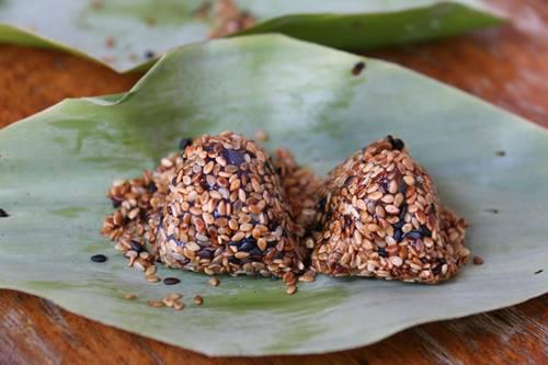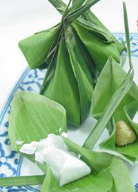 เป็นขนมที่ต้องทานคู่กันทั้ง 2 ห่อ คือ ห่อของไส้ มีส่วนผสมของมะพร้าวกับน้ำตาลปี๊ปปั้นเป็นก้อนกลมๆ และอีกห่อเป็นส่วนของแป้ง ประกอบด้วยหัวกะทิ แป้งข้าวเจ้า เกลือ ความเค็มของแป้งกะทิและไส้มะพร้าวออกหวานนิด ตัดกันอร่อยกลมกล่อมอย่างลงตัว