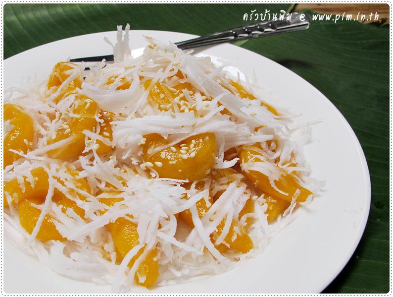 ขนมชนิดนี้มองกันให้ดีนะเจ้าคะ ว่านั่นคือมะพร้าวขูด ไม่ใช่ข้าวเหนียว เพราะมีหลายคนเข้าใจผิดเป็น "ข้าวเหนียวแก้ว" ซึ่งที่จริงแล้วคือมะพร้าวขูดกวนกับวุ้น รสชาตินี้หม่อมขอบอกเลยเจ้าค่ะว่า รสมะพร้าว "มันติดปาก หอมติดใจ และ หวานติดปลายลิ้น"
