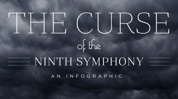 10.The Curse of the Ninth ในโลกดนตรีคลาสสิกได้มีอะไรบางอย่างที่น่ากลัว และเป็นที่รู้จักในชื่อ คำสาปเก้า กล่าวคือนักประพันธ์เพลงหลายคนที่ได้แต่งเขียนซิมโฟนีหมายเลขเก้า ล้วนเสียชีวิตหลังจากที่แต่งเพลงนั้นไม่นาน (หรือเสียชีวิตโดยที่ซิมโฟนีหมายเลขเก้า ไม่สมบูรณ์) จนเปรียบว่าซิมโฟนีหมายเลขเก้า คือปลายทางสุดท้ายของนักประพันธ์เพลง โดยเหยื่อที่มีชื่อเสียงคือลุควิจ ฟาน เบโธเฟน ( เบโธเฟนเขียนแต่งเสร็จแล้วแสดงครั้งแรกในปี 1824 และเขาเสียชีวิตเมื่อวันที่ 26 มีนาคม 1827) ส่วนกรณีของกุสตาฟ มาฟ์เลอร์คิดว่าเขาสามารถรอดพ้นคำสาปนี้ หากแต่เขาก็มีตายก่อนหลังจากเขียนซิมโฟนีหมายเลขสิบ ที่ยังไม่สมบูรณ์สำหรับนักดนตรีคนอื่นๆ ที่เกี่ยวข้องกับคำสาปซิมโฟนีหมายเลขเก้า ก็เช่น Kurt Atterberg, Elie Siegmeister ,Alfred Schnittke , Roger Sessions ,Egon Wellesz ,Ralph Vaughan ,Williams ,Peter Mennin และ Malcolm Arnold (ปล. ซิมโฟนีหมายถึงเพลงที่ใช้ในวงออเคสตรา ส่วนหมายเลขคือลำดับของซิมโฟนีบทนั้นๆ
