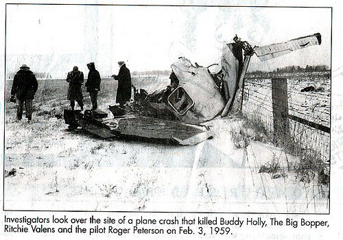 วันที่ 3 กุมภาพันธ์ ค.ศ. 1959 เป็นวันเสียชีวิตของชาร์ลส ฮาร์ดิน ฮอลลีย์ หรือเป็นที่รู้จักในชื่อ บัดดี้ ฮอลลี เป็นนักร้อง-นักแต่งเพลงชาวอเมริกัน ผู้บุกเบิกเพลงร็อกแอนด์โรล จากอุบัติเหตุทางเครื่องบินในขณะเดินสายทัวร์พร้อมคณะ และนั้นเองที่เป็นจุดเริ่มต้นของคำสาป บัดดี้ ฮอลลี ที่นักดนตรีจำนวนมารกและผู้เกี่ยวข้องกับฮอลลี่และเพลงของเขาต้องมาเสียชีวิตก่อนวัยอันควร ยกตัวอย่างเช่น รอนนี่ สมิธนักร้องรับจ้างที่มาแทนฮอลลี่ทัวร์มีอาการทางจิตและส่งเข้าโรงพยาบาลไม่กี่ปีหลังจากนั้นเขาก็ฆ่าตัวตายด้วยการแขวนคอ ถัดมาเป็นเดวิด บ็อกสมาชิกคนหนึ่งในวงดนตรของฮอลลีเขาพยายามเป็นนักร้องเดี่ยว หากแต่เขาก็มาเสียชีวิตลงด้วยอุบัติเหตุเครื่องบินเช่นเดียวกัน และวันที่เสียชีวิตเขาอายุ 22 ปี เท่ากับฮอลลี รายต่อมาคือมาเรียภรรยาของเขาแท้งลูกคนเดียว จจากนั้นคำสาปแช่งก็แพร่กระขายไปยังยีน วินเซนต์และเอ็ดดี้ คอเครนหรือแม้แต่คีธ มูนั้ออกไปดูฮอลีก่อนที่จะเสียชีวิตในที่ 7 กันยายน และต่อมาเอสแกรี่ แพตเตอร์สันได้ค้นคว้าข้อมูลคำสาปเหล่านี้เขียนลงในหนังสือ Take a Walk on the Dark Side: Rock and Roll Myths, Legends and Curses และสารคดีด้านล่าง