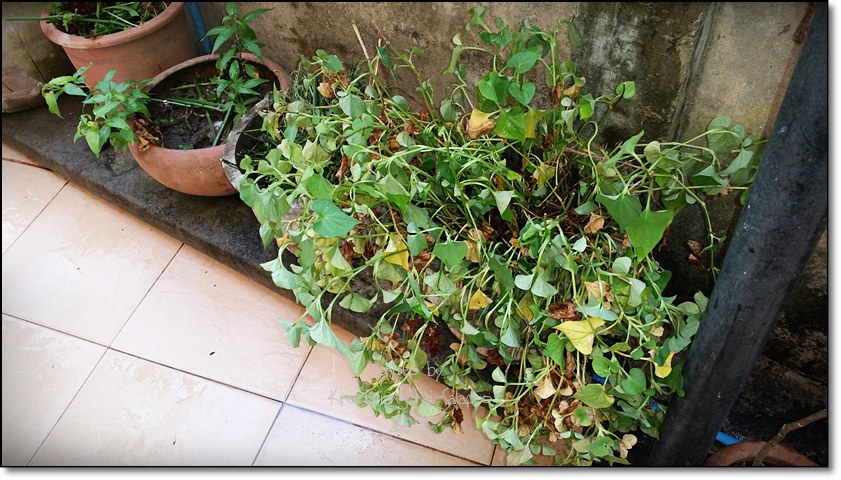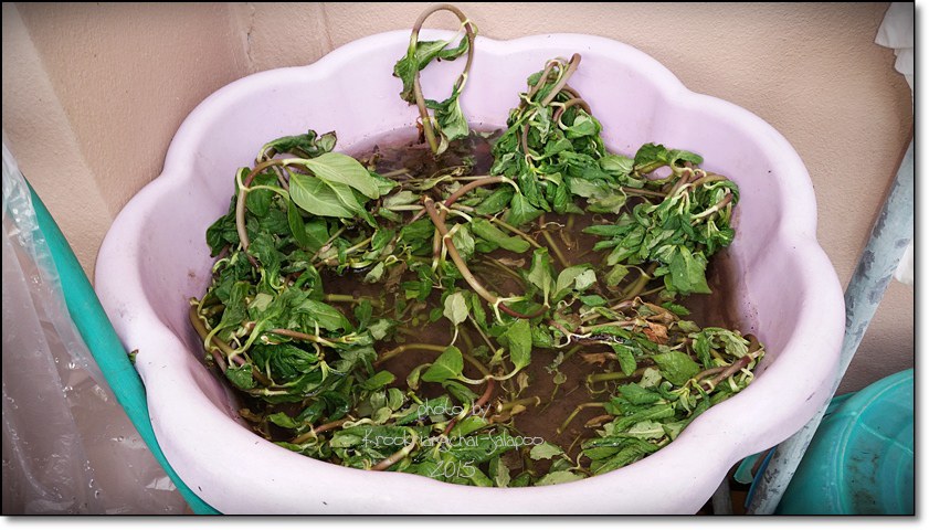 เดินไปหลังบ้าน ใจหายแว๊บเหมือนป็นลางร้ายว่าต่อไปคงจะไม่ได้กินลาบที่มีผักแกล้มอร่อย ๆ ละสิ ต้องรีบรดน้ำอย่างเร็ว