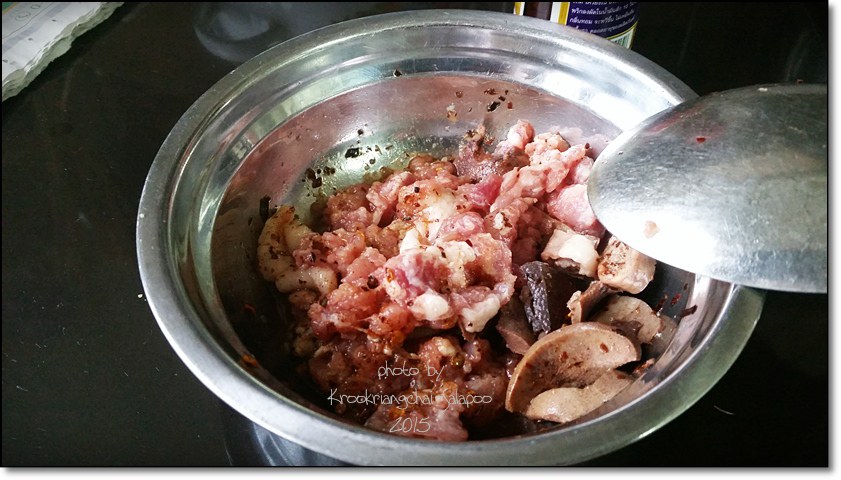 ทำง่าย ๆ อีกต่างหาก (หมายถึงการทำลาบคั่วแบบง่าย ๆ นะครับ จริง ๆ แล้วถ้าเป็นลาบเหนือจริง ๆ เขาจะมีกรรมวิธี