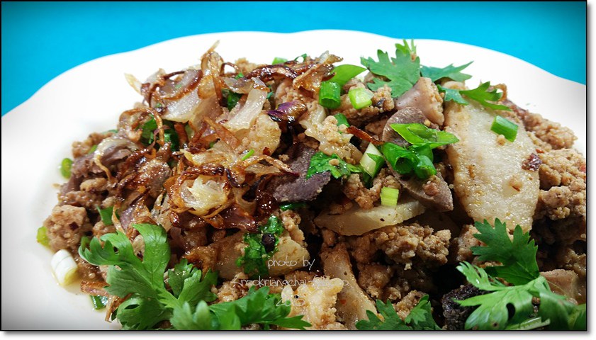 ลากันที่ภาพนี้ครับ ลาบคั่วเมืองเหนือจริงถ้าไม่เอาไปคลุกข้าวโฉมหน้าจะเป็นอย่างนี้ครับ หอมกลิ่นเครื่องเทศสมุนไพร