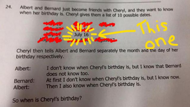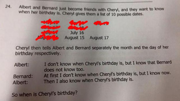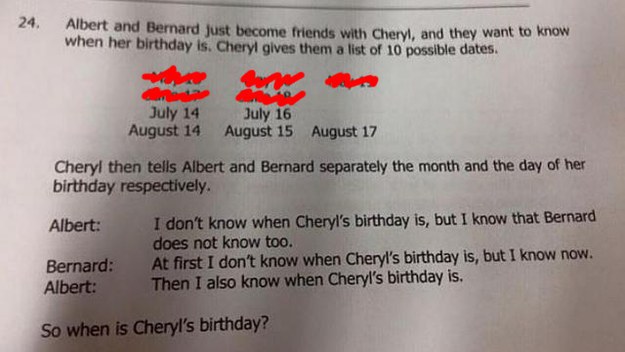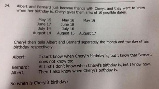 คำถามคือ วันอะไรคือวันเกิดของ Cheryl?”